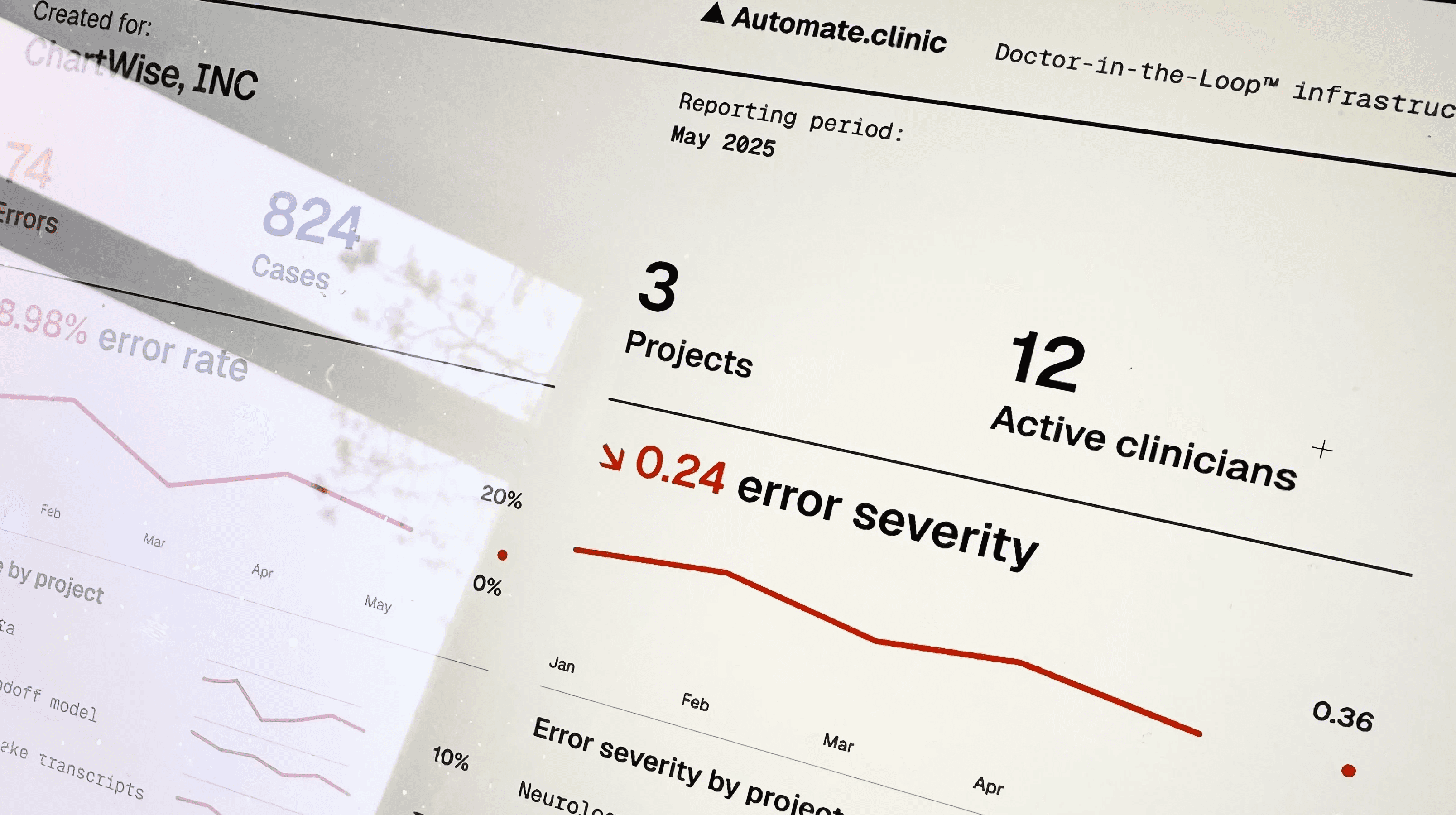We build rigorous evals that quantify improvement over time, giving you the benchmarks that demonstrate clinical safety and deployment readiness.